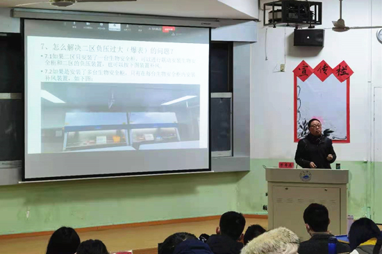 培训班严格按照防控规范要求分四个班、四个会场举行,来自江西省PCR实验室验收专家组的万本愿组长、江西省人民医院检验科的李蓉主任、江西省人民医院检验科的曾黎峰副主任、江西省胸科医院中心实验室的熊国亮主任,结合新冠肺炎核酸检测临床实践与理论——从医疗机构新冠病毒核酸检测工作手册解读、实验室建设与规范使用、实验室生物安全及个人防护、样本混采技术、检验全过程质量管理与评价等方面进行了详尽的理论培训。