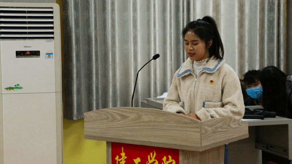 寒假红色作业学党史“两学三讲”优秀作品获得者、宣讲团成员、临床医学院肖丽萍同学作了《传承井冈山红色基因》的宣讲。
