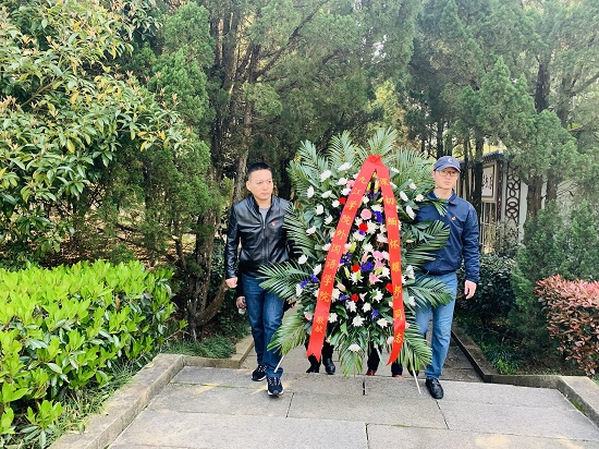座落于共青城富华山的耀邦陵园松柏环抱、绿荫满园、安静庄严。党员们怀着无比崇敬的心情瞻仰了耀邦墓,向耀邦同志敬献花篮,三鞠躬,表达了对这位伟大的无产阶级革命家、政治家的深切怀念和崇高敬意。
