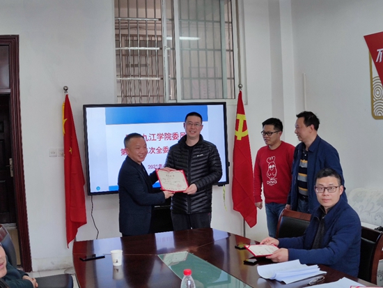 会议宣读了《民盟九江学院委员会关于表彰2020年度先进个人的决定》,并为王经忠、蒋枫霆、秦穆英、梁莉、刘佳佳、谭美萍、冯国强、聂鹰、肖瑞敏、钟健松、黄亮、马书月等12名优秀盟员颁奖。