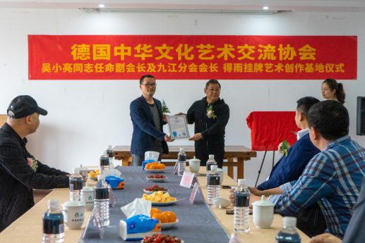 参加学术交流及揭牌仪式嘉宾有:德国中华文化艺术交流协会会长邵红升,中华陶瓷大师联盟副主席、中国陶瓷设计艺术大师、景德镇市美术家协会副主席、景德镇市党外知识分子联谊会副会长洪南雨,中国美术家协会会员、中国书法家协会会员、安徽萧县宣传部对外交流中心主任、美协副主席耿宏亮及景德镇文化艺术界人士。