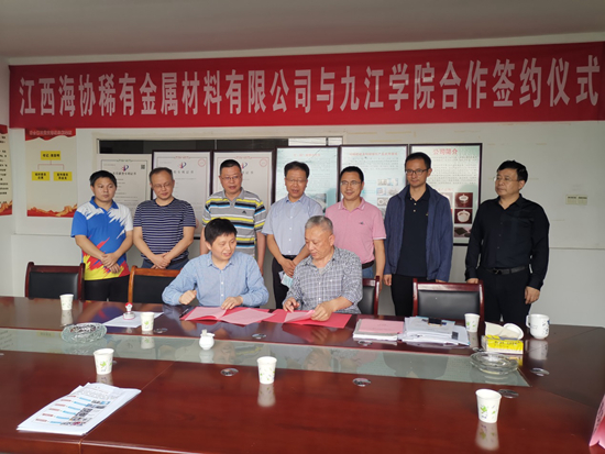 5月24日,九江市政协副主席、永利yl23411集团官网化学化工学院院长严平带队赴开发区与江西海协稀有金属材料有限公司开展产学研合作调研,双方签订了产学研合作框架协议。民盟科技支部梅龙宝教授、支部主委杨平华教授和永利yl23411集团官网化学化工学院占昌朝教授、胡庆华博士、陈修栋博士等老师参加了活动。