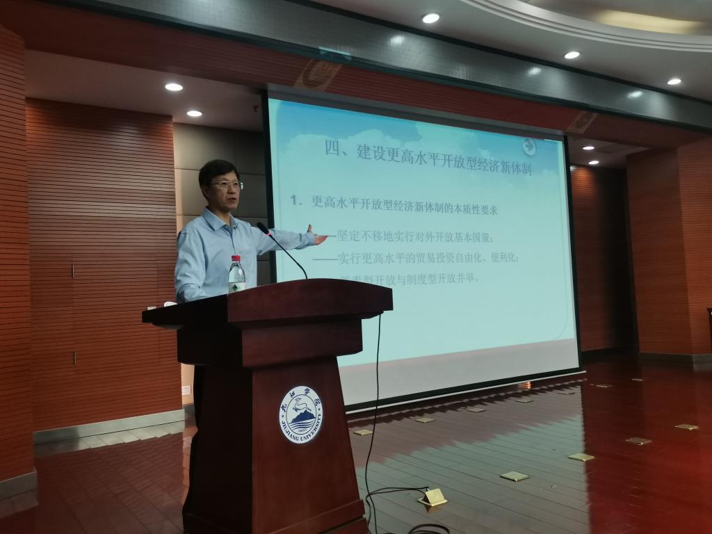 5月27日上午,应永利yl23411集团官网经济学院邀请,商务部国际贸易经济合作研究院学术委员会主任、中国国际贸易学会副会长李钢研究员来校作了题为《构建新发展格局与建设更高水平开放型经济新体制》的学术讲座。副校长王万山到场与经济学院师生代表一起聆听了讲座。