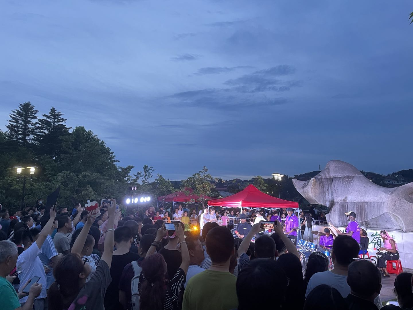 7月9日晚上,首场文化艺术表演志愿活动在庐山牯岭镇街心公园开演,中外学生欢聚一堂,共同奉献了精彩演出。永利yl23411集团官网派出的留学生志愿者服务队,演唱了“重温往日情怀”“月亮代表我的心”“朋友”和“我爱你中国”等十余首中外文流行歌曲和校园民谣。志愿演出活动受到现场观众的热烈欢迎,来自全国各地的游客把舞台围得水泄不通,现场气氛十分热烈,演员与观众频频互动,不少观众跃跃欲试,上台一展歌喉。