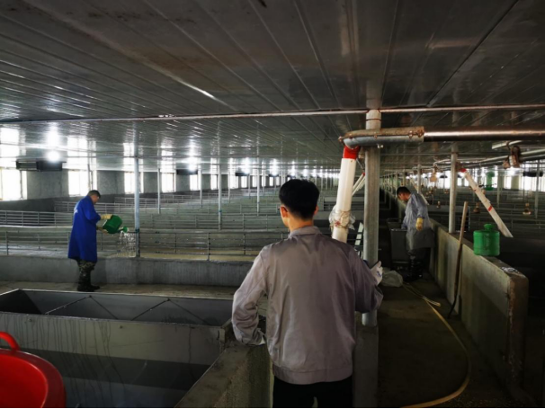 实践队前往位于深山中的生猪养殖场,对养殖行业现状展开调研。进入养殖场前,实践队员都经过了入口处严密的消毒,以防止外来病菌对养殖场造成感染。在养殖场中,实践队员换上了防化服装,手拿烧碱水,协助养殖户对猪场进行杀毒消菌。