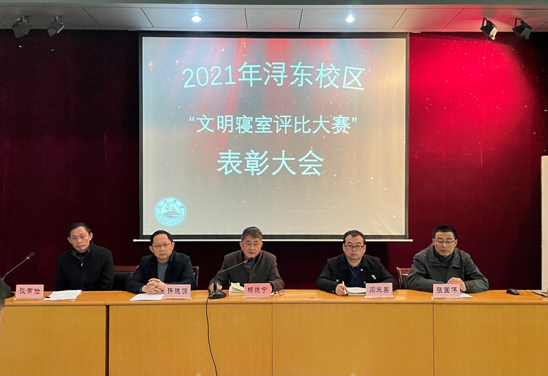 12月22日下午,浔东校区管理办在校区立本楼报告厅举行了2021年度浔东校区“文明寝室”表彰大会。浔东校区管理办领导、驻校区护理学院、药学与生命科学学院和医学院党委书记、副书记及各相关科室负责人、获奖寝室代表参加了本次表彰大会。