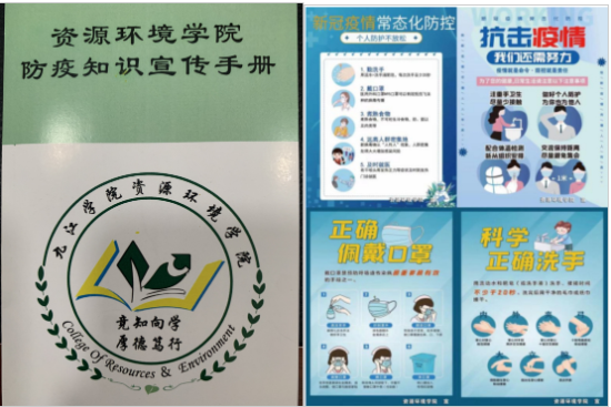为让师生们以更加积极的心态应对疫情,资环学院全力做好防疫宣传工作,普及防疫科学知识,提升防控意识。自开学以来,该学院先后多次组织学生开展疫情防控知宣讲、主题班会、疫情防控知识竞赛等活动;精心编制防疫健康知识宣传手册,发放于每一位学生手中;学院办公室、实验室、宣传栏处张贴防疫知识海报。通过上述方式直观深入地给师生们科普了新冠病毒相关知识以及心理辅导知识,同时学习个人防护知识包括正确佩戴口罩、科学七步洗手法、防疫口诀、积极接种新冠疫苗的重要性等,使全体成员防护到位,对自己负责、对社会负责。