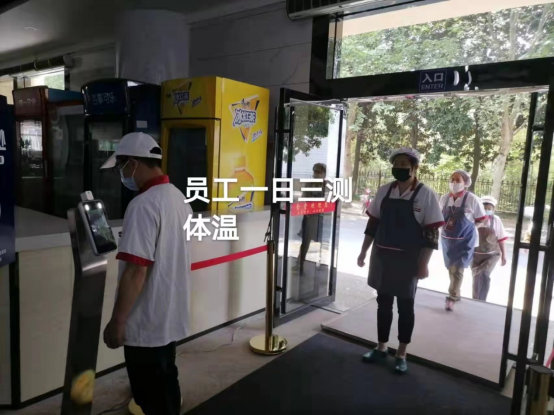 本学期开学后,按照后勤处整体工作计划,饮食服务中心提前部署,向员工传达了相关防疫工作要求,动员教育全体员工提高政治站位和服从意识,有序开展各项演练,坚持每周两次全员核酸检测,坚持食堂环境和使用器械每周物检,坚持日常每天晨、午、晚员工三次体温检测,全员核查健康证,跟踪把握员工第三种接种情况,确保全体从业人员健康上岗,有序工作。除这些日常工作之外,饮服中心还将各供应商的健康管理纳入统一管控平台,所有供应商人员、车辆相对固定,安排专人核验健康码、行程码、疫苗接种、核酸检测等信息。各食堂安排专人对进出口佩戴口罩进行提醒和监督,通过门口小喇叭、温馨提示牌、微信推文等形式加强防疫提醒,营造抗疫氛围。