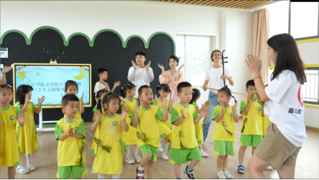 文小青们变身“育心春蚕”,结合积极心理学,广泛组织留守儿童开展彩虹育心活动,将优秀传统文化、乡土文化、红色文化、生态文化、体育文化、美学文化和劳动文化带入乡村,启智润心,帮助留守儿童们树立自信,健康成长。6月24日,队员们来到庐山市海会镇中心幼儿园,以“我是一颗小茶树”为主题向孩子们宣传优秀传统文化、乡土文化、生态文化和美学文化。生动新颖的心理剧形式,让孩子们创意玩乐,课程畅想了智能机器人采茶的美好蓝图,科技创造未来的种子已在他们心中生根发芽。