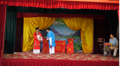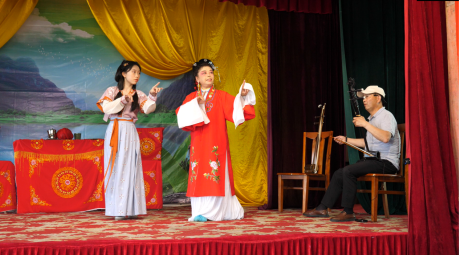 随后,文小青服务队前往柴桑区新塘镇、狮子镇感受了非遗传承发展情况,并为“绝艺”注入青春气息。队员们欣赏了一场精彩的表演《杨驼子娶亲》,其戏本内容诙谐幽默,曲调清新甜美,深受大家喜爱。