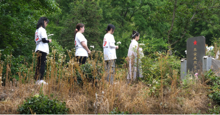在茶山高处,队员们祭献英烈