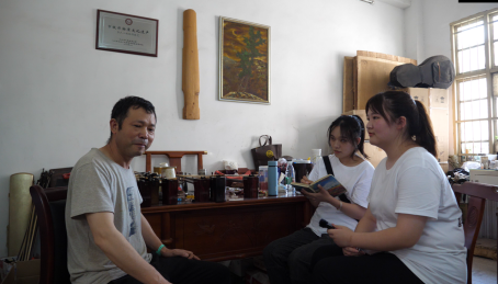 81岁高龄的戏曲协会主席李世荣老师向同学们介绍:“我的后半生与戏歌曲调结缘,在采集民间非遗作品的过程中记录了许多即将失传的曲目、歌调。为了给非遗呐喊,协会常年公益送戏曲下乡,希望千年古城柴桑的非遗文化能够再放光彩。感谢同学们冒着烈日酷暑来访,希望大学生都能够热爱采茶戏,做好非遗传承工作。”