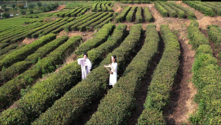 6月23日清晨5点,文小青服务队来到柴桑区新塘乡鑫丰茶园为自编自导的现代茶戏《庐山云雾》取景,宣传庐山云雾茶,服务其市场销售。