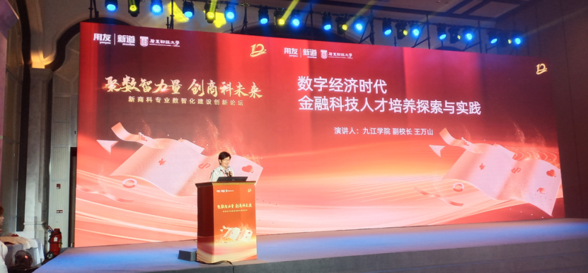 近日,应用友集团的邀请,副校长王万山带领经济学院相关负责人等一行三人参加了由用友网络股份有限公司、新道科技股份有限公司主办的“担时代责任育数智新人——第十二届数智化人才培养产教融合发展大会”。会上,王万山以“数字经济时代金融科技人才培养探索与实践”为主题发表演讲,深入探讨了数字经济时代培养金融科技人才培养的院校实践与路径,受到与会者的赞赏。