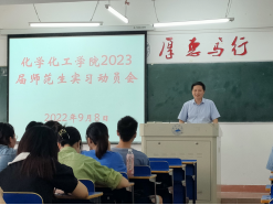 为确保化学化工学院首届师范生教育实习工作的顺利开展,化学化工学院高度重视,前期进行了精心筹划,协同学校师范科积极联系落实教育实习基地,并依据师范生培养方案制定详细的教育实习大纲,进而确定了实习方案及具体计划。为了能够充分调动学生参与教育实习的积极性,化学化工学院召开2023届师范生教育实习动员会,对实习生在实习期间的学习、生活、安全,尤其是疫情防控等提出了具体指导要求,要求全体实习生把握实习机会、提高实践能力,圆满完成教育实习任务。