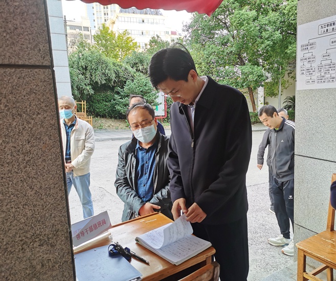 查振华认真听取了浔东校区管理办各项工作汇报,并仔细查阅了浔东校区的疫情防控工作台账,对图书馆、商业门店等处的疫情防控和消防安全情况进行了实地检查。他对新学期开学以来浔东校区的各项工作表示了肯定,并指出大家要统一思想,确保校区工作不断线,保持良好工作状态;要抓好疫情防控工作,以实际行动迎接党的二十大胜利召开;要克服校区设施设备老化的困难,将安全问题作为重中之重,维护校园安全稳定。