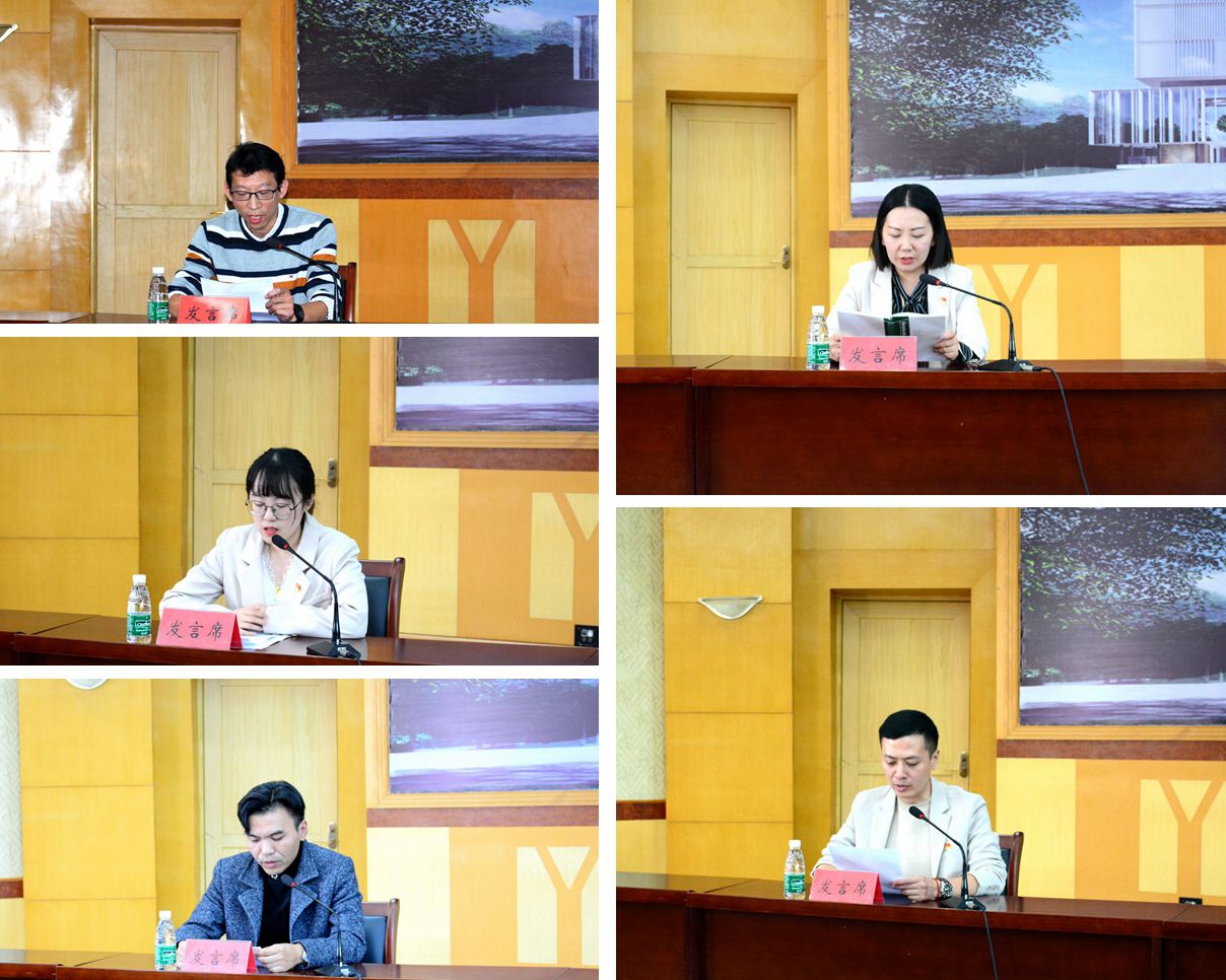 集体谈话会上,新任科级干部代表离退休人员工作处管理科科长兰国斌、建筑工程与规划学院办公室主任徐姝、发展规划与学科建设处学位管理科副科长卢松涛、经济学院学生思政教育科副科长郭格格、附属医院院长办公室副主任朱超等五位同志分别做了表态发言。
