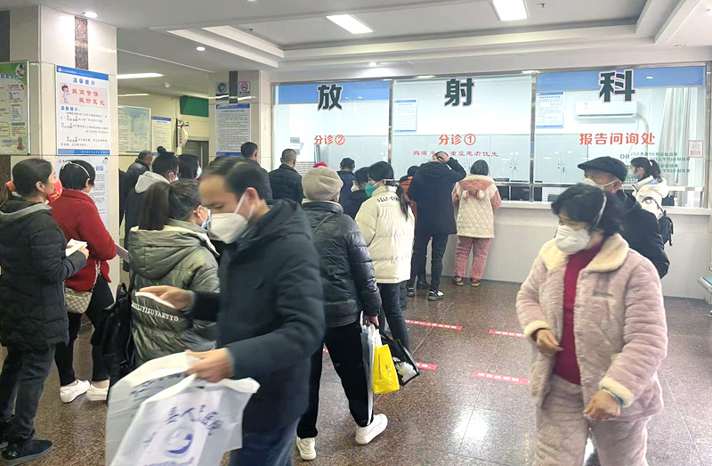随着时间的推移,科内感染的医护人员不断增多,短短几日就有许多人就先后出现肌肉酸痛、寒战作冷、高烧不退等现象。但科室主任、组长们坚持起带头作用,做到了既关怀内部人员身体健康又保证科室正常运转。同时科内也涌现出许多“可爱的人”,防控政策放开后,放射科技师组的技师们,每日检查患者人数剧增,晚上急诊患者都有一百多人,技师直接面对各类患者,也直接面对病毒的冲击,却没有一个人退缩。科室有的人发烧后害怕感染家人,连续多天晚上睡在值班房;也有的同事在不知情中感染了家人,全家老小高烧不退;还有更多的同事顶着不适,仍然坚守在岗位一线,没有人有怨言。