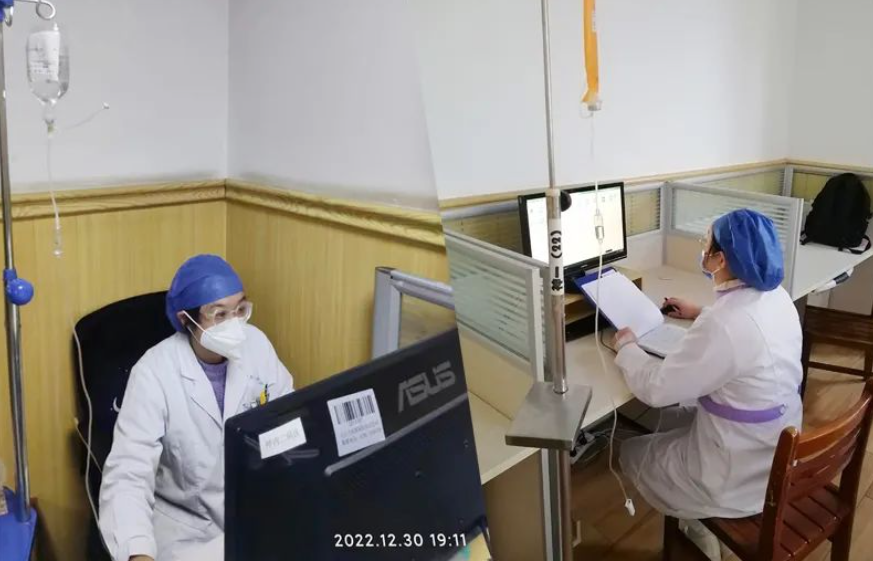 如头顶退热帖、打着点滴仍坚持工作的一幕幕在院里并不罕见,默默付出、无私奉献,是当前附属医院每一名医护人员守护患者平安健康的真实写照。