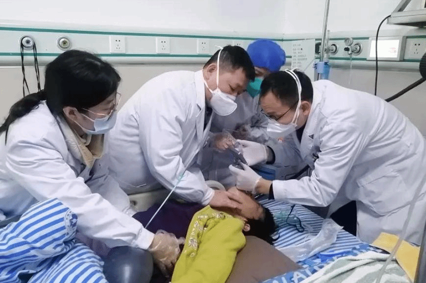 神经内科的医护团队第一时间赶到患者的床前,以最快速度合力将患者抬进抢救室,经过心肺复苏、气管插管、建立静脉通路等一系列急救措施后,终于暂时稳定住了生命体征。