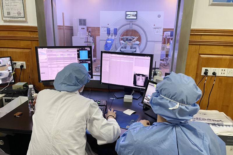 疫情这几年放射科是最繁忙的科室之一。平常日子,放射科的患者也约在400人左右。这段时间增加了一倍,工作量也增强了一倍,给放射科带来了极重的压力。“全院4台CT连夜运转,技术组、诊断组24小时在岗,保证急诊患者在30分钟拿到诊断报告。工作任务重,但我们每一个人一直坚守岗位,仔细给每一位病人做检查。”