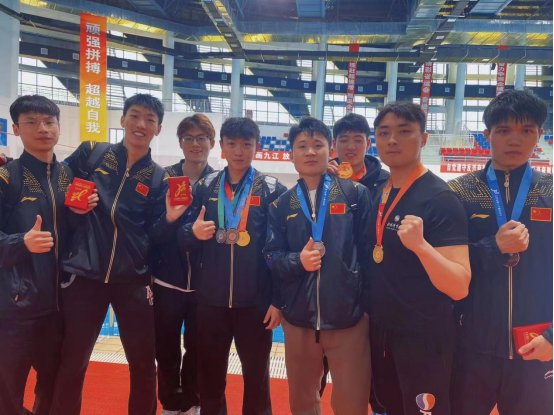 历经疫情延期的2022江西省第十六届运动会游泳(高校组)比赛,在赛事各方的努力下,于今年3月12日至3月15日在九江市湖口县顺利举行。九江学院游泳队在领队蒋国荣、李月娟和教练宋在国、周廼敦的带领下参加了此次比赛,永利yl23411集团官网游泳健儿们团结一致、奋勇拼搏,共夺得7金、8银、12铜的出色成绩。