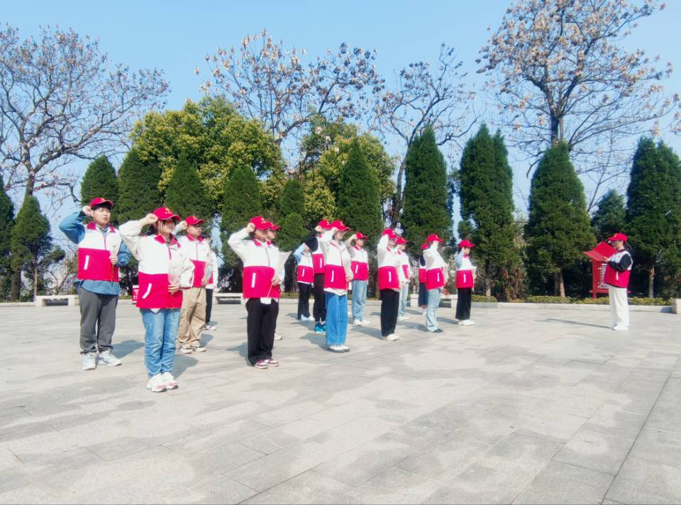 上午九时整,活动正式开始。志愿者们来到烈士纪念馆,瞻仰了烈士们留下的荣誉勋章和作战武器,学习了烈士们的光荣事迹。随后,同学们在烈士墓碑面前向烈士默哀,向烈士三鞠躬,敬献鲜花。接着,在相关工作人员的带领下,满怀着对烈士的敬意和哀思,同学们紧握右拳,重温入团誓词,坚定了奋进报国的志向。