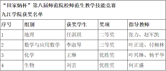 4月14日-16日,教务处组织率队赴浙江金华参加“田家炳杯”第八届全国师范院校师范生教学技能竞赛决赛。经过激烈的角逐,永利yl23411集团官网旅游与地理学院学生任淇琪同学荣获地理学科组二等奖。本次竞赛永利yl23411集团官网另获三等奖1项和优胜奖2项,具体如下: