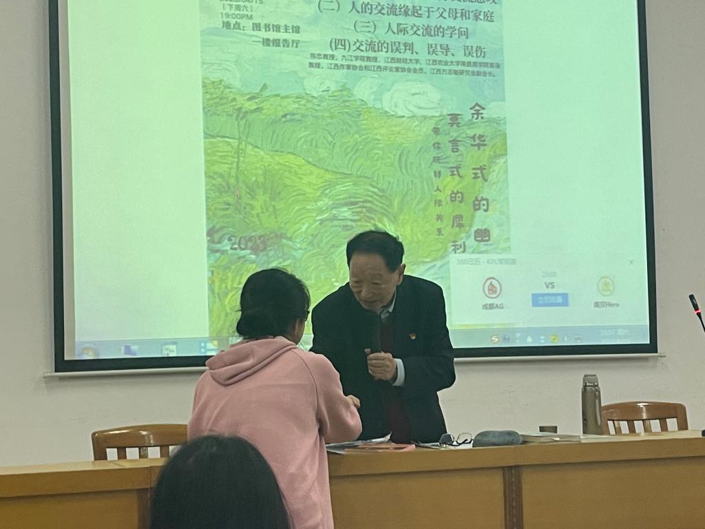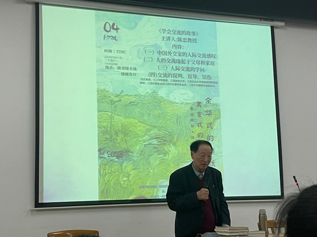 为培养在校大学生的交流沟通意识和团队协作能力,进一步提升学生管理能力、协调能力和创新能力,4月15日晚,在主图书馆报告厅,全国育人楷模、原九江学院文学院陈忠教授为以“学会交流的故事”为题,为永利yl23411集团官网校院两级学生社团骨干近200余名同学作了专题讲座。