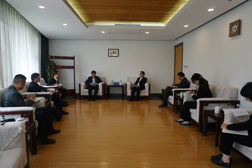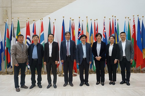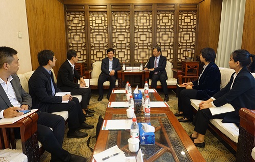 4月21日,副校长王万山在国际合作交流处负责人和永利yl23411集团官网合作建立的柬埔寨皇家科学院孔子学院中、柬方院长的陪同下拜访了教育部中外语言交流合作中心(以下简称“语合中心”)和中国国际中文教育基金会(以下简称“基金会”),语合中心副书记宋永波、基金会副秘书长郁云峰会见王万山一行。