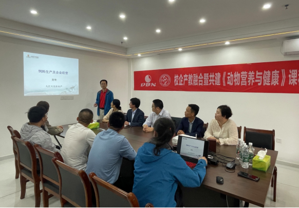 为贯彻落实省教育厅《关于印发<进一步加强高水平应用型普通本科高校建设的实施意见>的通知》,助力学校高水平应用型大学建设,实施校企合作协同育人,扎实推进产教融合型课程建设与改革工作,5月7日,药学与生命科学学院党政领导组织课程组教授博士一行6人,深入共青城市经济开发区九江大北农水产科技有限公司开展校企产教融合暨共建《动物营养与健康》课程研讨工作,并与公司成功签署“校企产教融合合作协议”。共青城市政府党组成员、副市长郑斌等领导莅临现场指导工作。