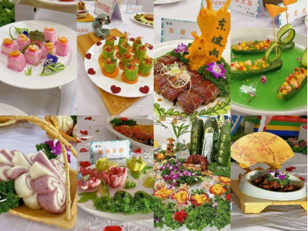 在美食文化节主场学生三食堂一楼大厅内,各食堂的厨师们纷纷拿出自家绝活,一百六十种各色美食精彩呈现,供师生品鉴。从现场制作的精美特色菜到天南地北的地方菜,从中式糕点到西式美食,餐厅的每一个角落都氤氲着烟火的温度。精湛的雕刻技艺和精巧的加工摆盘设计充分体现了美味与创意的融合,让到场的学生直呼过瘾。