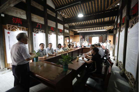 在村头的一堵墙上,“把红色资源利用好,把红色传统发扬好,把红色基因传承好”三行大字,格外鲜红醒目。在纪念馆中,一件件革命文物、一张张老旧照片,一个个感人故事带领着党员们一同走进那段艰苦卓绝的岁月。先烈们不畏牺牲、舍生忘死的革命精神和悲壮事迹深深地震撼着每一位党员。尤其是80高龄的刘同颜老人,从党政领导岗位退下来之后,全身心投入到刘肩三满门忠烈革命故事的挖掘整理之中,积极争取当地党委政府和社会各界大力支持,组织编写刘肩三革命事迹实录《信仰的力量》,建起刘肩三教育纪念馆,并把后垅村打造为远近闻名的红色名村的感人事迹,让现场的每一位党员无不为之动容和深感敬佩。