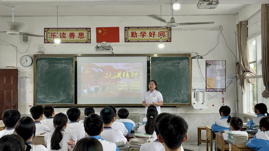 抗洪精神薪火相传,走出校门宣讲抗洪精神是九江学院建工学院实践育人的一项举措。通过沉浸式学习、感悟,宣讲等形式,宣讲团成员们讲好了抗洪故事、传递了抗洪声音,让青年的思想有了传承,让少年有了知识的汲取、心灵的震撼、精神的激励和思想的启迪,将红色基因融入血脉化作奋斗动力,用实际行动让初心薪火相传,把使命勇担在肩。