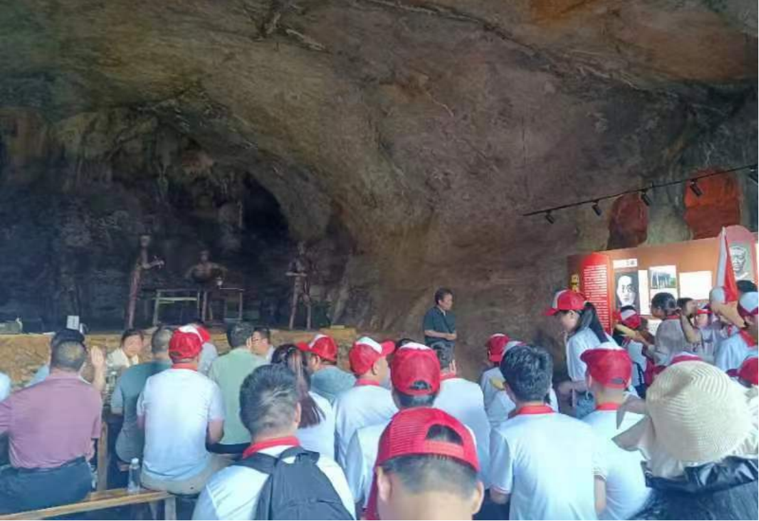 在宽田乡大堡村狮子岩山下,“在88年前有一位县委书记高呼着“共产党万岁”,纵身跃入深不见底的石崖溶洞……”村民蓝清森为我们讲述了原中央苏区瑞西县委书记马德明的故事,参与活动的人员都被马德明烈士英勇跳崖、慷慨赴死的英雄事迹震撼。