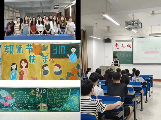 浓浓师生情  满满都是爱  在教师节来临之际,经济学院学生会向全院学生发出号召——在教师节里为敬爱的老师献上自己真诚的祝福。学院鼓励学生通过打电话、发短信、拍视频等形式,向老师送上真挚的问候。学院通过绘制主题海报、举办主题黑板报比赛、召开主题班会等活动,在全院范围内营造了浓浓的尊师重教良好氛围。活动发起后,同学们积极响应,通过自己的方式向老师们传递了最真诚的祝福,以真诚的感恩行动伴随着经济学院教师度过了一个温暖贴心的教师节。同时,同学们培养了树立尊师重教的意识和传承中华民族优秀文化的精神。