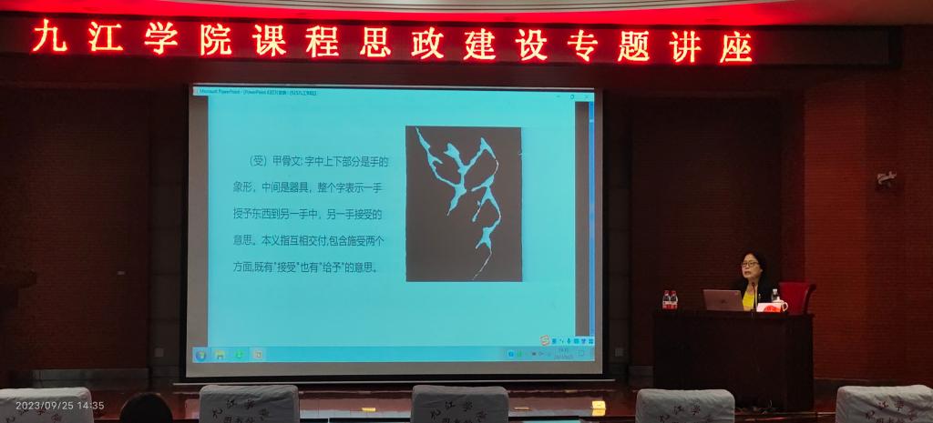 为进一步推动学校教学改革,丰富课程育人内涵,探索发挥课程育人作用的途径,推进学校课程思政建设,增进思想政治理论课与专业课教学协同联动,提高人才培养质量,9月25日下午,学校邀请教育部课程思政教学名师、东华理工大学廖华英教授,作题为“课程思政之‘道’— 润物细无声”的专题讲座。学校各二级学院教学副院长、校级及以上课程思政示范课程负责人及团队成员、校级及以上一流课程负责人、2023年新入职教师、教务处相关负责人、教师教学发中心全体等近200余人参加了此次讲座。