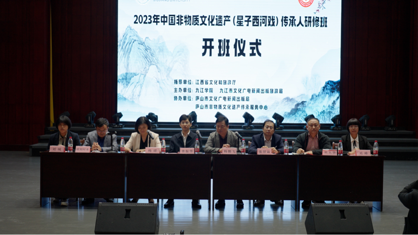 10月8日上午,2023年度中国非物质文化遗产传承人(星子西河戏)研修班在九江学院艺术学院音乐厅举行开班仪式。副校长查振华、江西省文旅厅非遗处副处长杨鹏飞、九江市文广新旅局副局长杨珺出席并讲话。市文旅局、庐山市文广局以及永利yl23411集团官网艺术学院相关负责人和本次研修班任课教师、学员、西河戏传承人参加开班仪式。