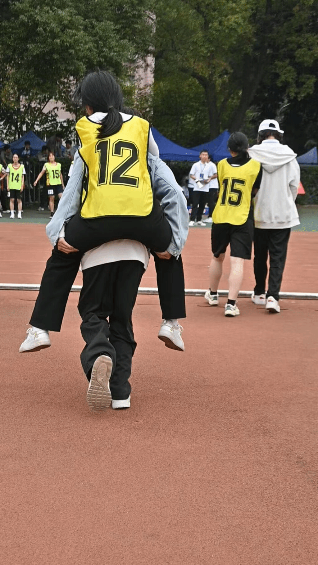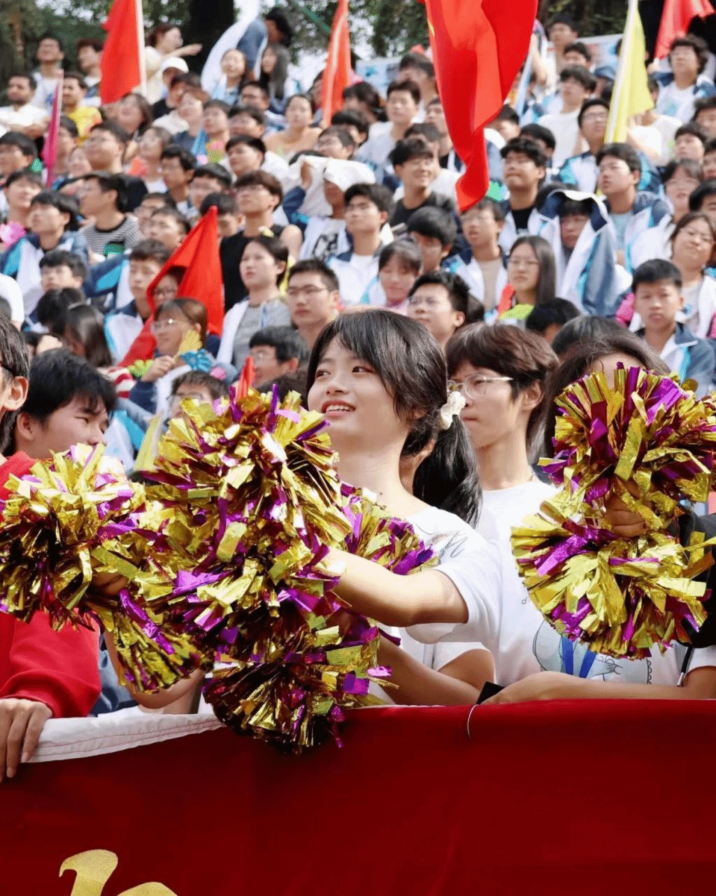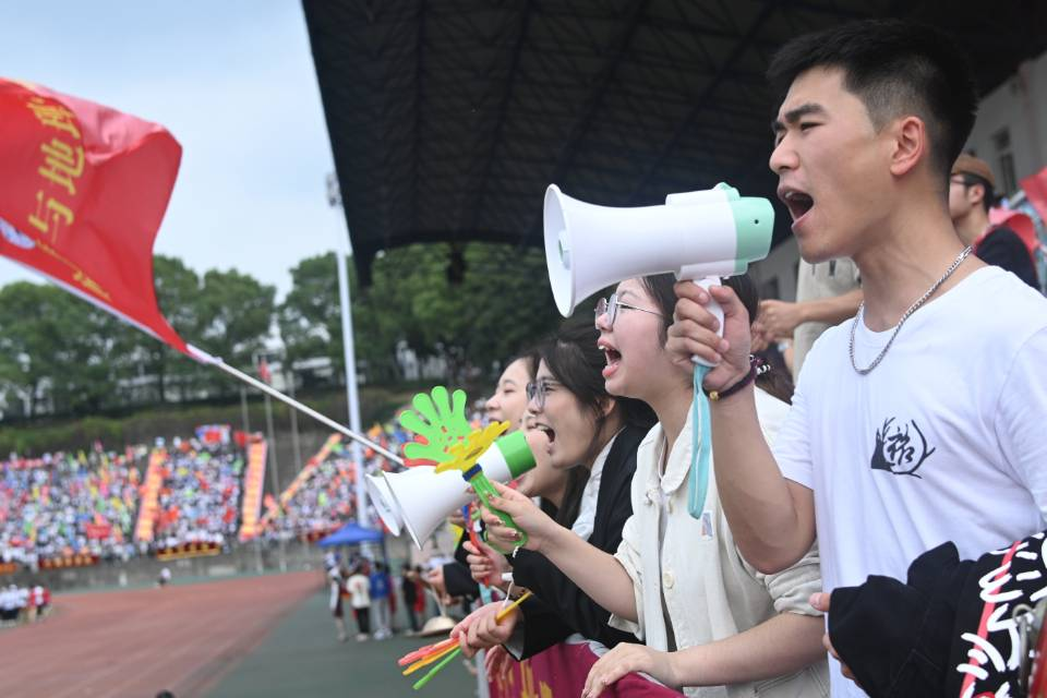裁判员公正执裁、志愿者无微不至、校医保驾护航、播音员声音作伴……现场欢呼不断,锣鼓喧天,各学院为运动员们鼓劲,加油声此起彼伏。每一个人都在用行动,给运动员传递温暖。