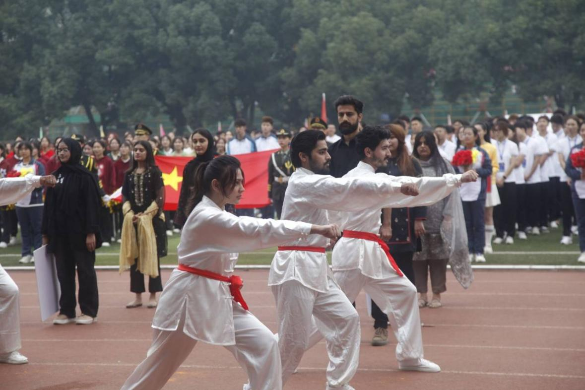 谈及开幕式表演,艺术学院A2364班赵昊楠饶说:“我们以花朵盛开为寓意,加上祖国的国旗元素,传递了阳光向上、青春活泼的大学生形象。” “国际交流学院的方阵队让我印象深刻,”教育学院A2331班的周念同学分享说, “他们让我感受到了国与国之间的关切,也让我看到了中华文化正在走向世界,我感到非常的自豪!”