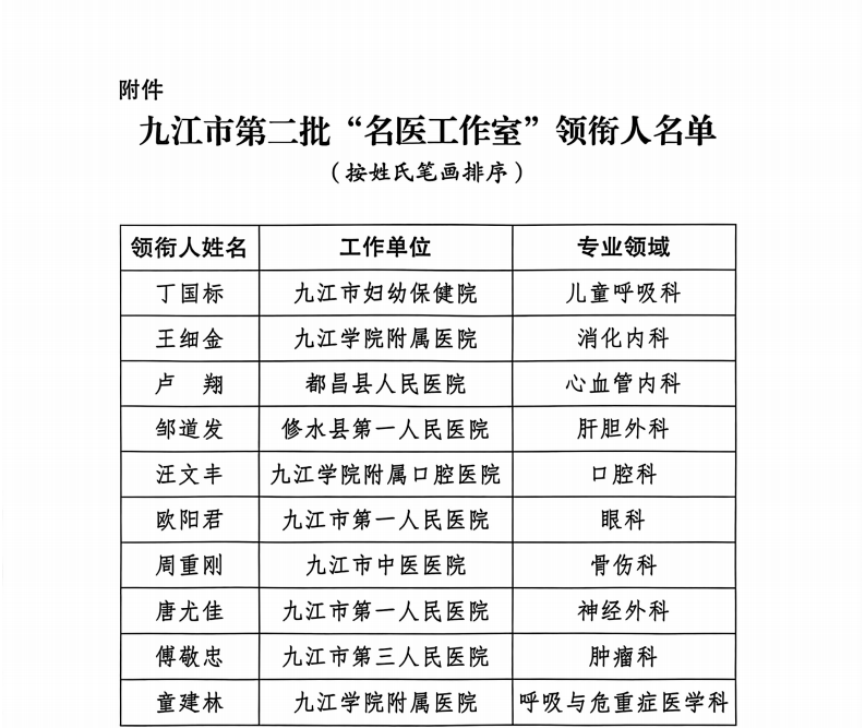 永利yl23411集团官网三位专家入选九江市第二批“名医工作室”领衔人