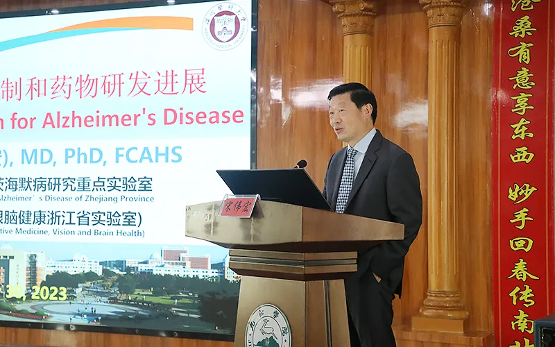 宋伟宏院士从中国人口老龄化切入,以“阿尔茨海默病发病机制和药物研发进展”为题,从分子生物学角度,以翔实的科研数据、丰富的研究图片、严谨的逻辑思维,深入浅出地阐述了阿尔茨海默病的发病机制、预防与治疗以及最新药物研发现状,同时,他介绍了本人及其科研团队在阿尔茨海默病研究上的进展及目前取得的阶段性成果,并结合自身的科研经历,强调了兴趣和专注于研究方向在从事医学科学研究工作中的重要性,并鼓励大家持续努力,在选定的领域贴上自己的“标签”。
