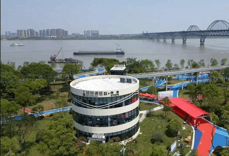 沿着长江岸线,师生们来到琵琶书屋。琵琶书屋犹如一把民族乐器琵琶静卧在浔阳畔,优美而灵动,其型向九江历史文化名人致敬,其神又与璀璨的浔阳文化相呼应。师生们登上书屋三楼天台,极目远眺,于浔城古韵书香中感受千年文化气息,静享片刻“诗意九江”。