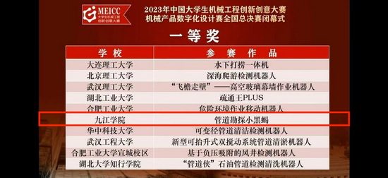机械与智能制造学院高度重视大学生学科竞赛。赛事启动以来,学院精心组织备赛工作,专业教师与学生协同联动,多举措并行,助力学子们在比赛中勇于创新、敢于实践,旨在让学生以赛促创、深入了解机械产品数字化设计、提高创新能力和工程实践能力。本次比赛本科赛道中,江西省高校仅获得两项全国一等奖,永利yl23411集团官网青年学子邵海浪、王巍嵩、何泽良组成的“管道勘探小黑蝎”团队在指导老师黄强、刘对的指导下一路过关斩将、攻坚克难,在众多高校919个项目中脱颖而出,最终斩获一项全国一等奖(仅30项)。