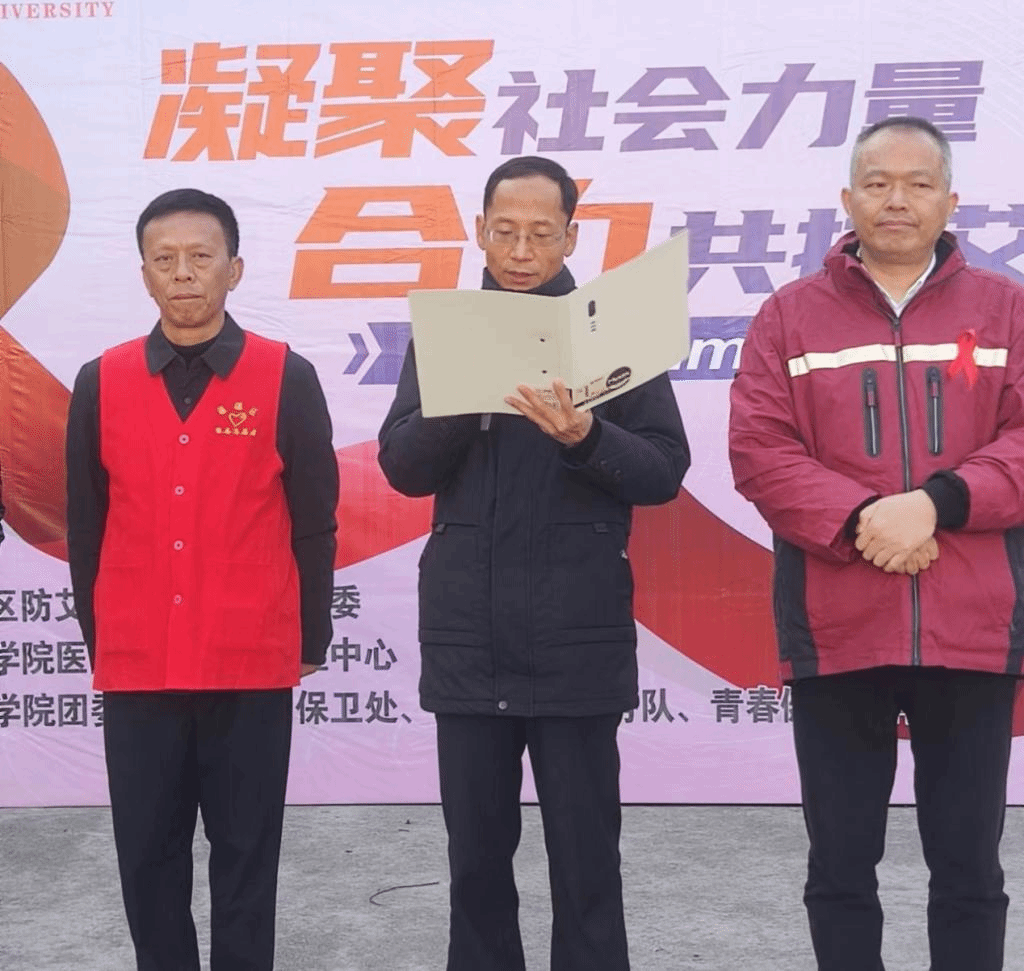 濂溪区防艾委委员、疾控中心邹平鸿主任为本次活动致辞,他呼吁各有关部门和高校加强联系与宣传,同心携手,共同抗击艾滋病,抵制艾滋病的侵害。