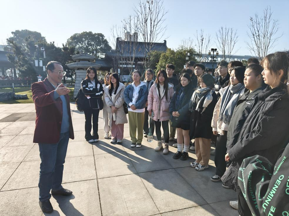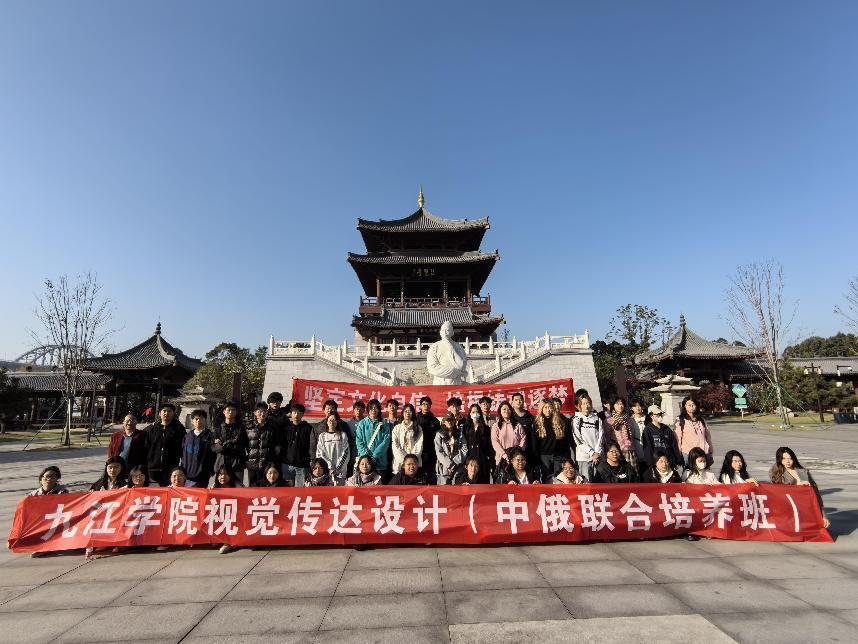 12月7日下午,阳光朗照,江风习习,九江学院艺术学院中俄本科教育联合培养视觉传达设计专业A2381、A2382班全体学生来到九江长江国家文化公园上了一堂主题为“坚定文化自信 培根铸魂逐梦”专题思政教育课。