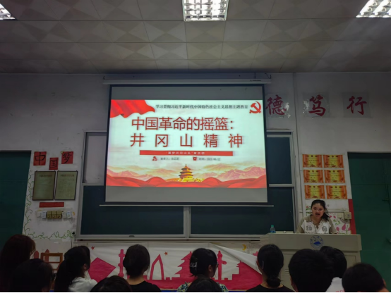 “井冈山是大革命失败后中国共产党创建的第一个农村革命根据地,是中国革命的摇篮……”从井冈山革命根据地的建立到井冈山革命期间的重要事件,刘席、谢睿杰、汤正芝、余震海、王悦、曾康荣、胡红玲、袁舒娅、王金鹏、郭兰一等宣讲团成员声情并茂,将井冈山革命历程生动地展现在同学们面前。小井红军医院、小井红军烈士墓、刘真、方志敏……一处处革命遗址倒映峥嵘岁月,一个个革命烈士彰显不屈之心。宣讲团成员既是演讲者,也是“传火者”,根植于红色革命精神,演讲以革命历史,一词一句变成星火两三点,播撒于同学们的心中,最终会成为燎原之势。