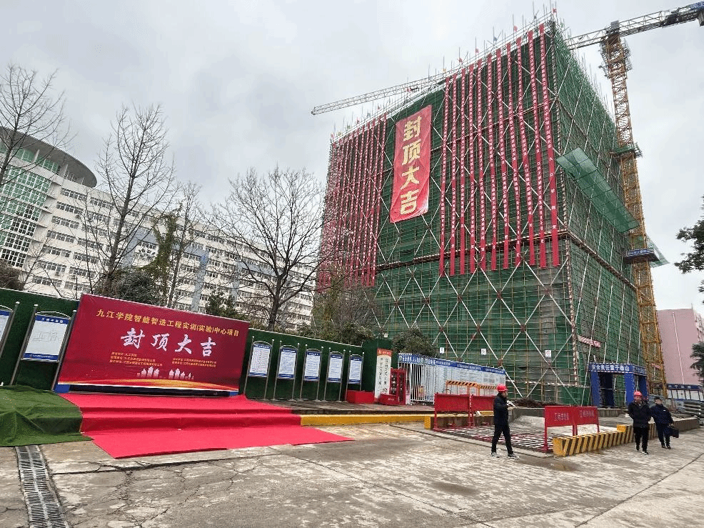 副校长严平、统战部部长刘遵海,基建处、资设处负责人等到项目现场送祝福,智能智造管理专班、相关施工、监理等单位主要人员一同为项目庆祝封顶。
