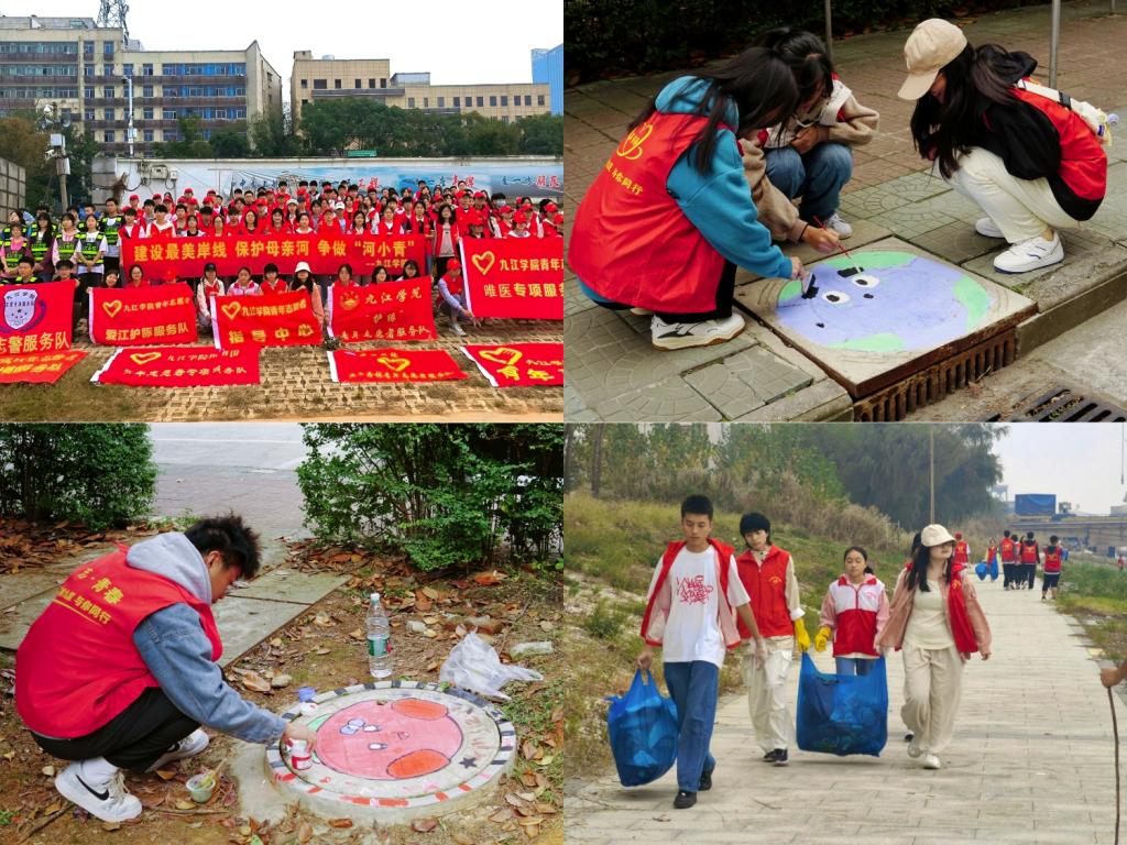 各二级学院积极开展了“环校行”、在图书馆开展志愿服务等活动,组织学生采取分区分组的方式,对校园生态绿化带和图书馆环境进行清理和维护,将校园垃圾分类回收,把校园“井盖”变“景盖”,努力建设节约型、生态型绿色校园;学校团委在长江“最美岸线”上开展“牢记嘱托 紧循足迹 担当使命”特色实践主题团课,青年学生志愿者沿江开展净滩志愿服务,捡拾沿岸的塑料袋、生活垃圾、漂浮物,并将垃圾汇集到一起进行垃圾分类,让学生在社会实践课堂中深化理解“绿水青山就是金山银山”的生态文明理念。