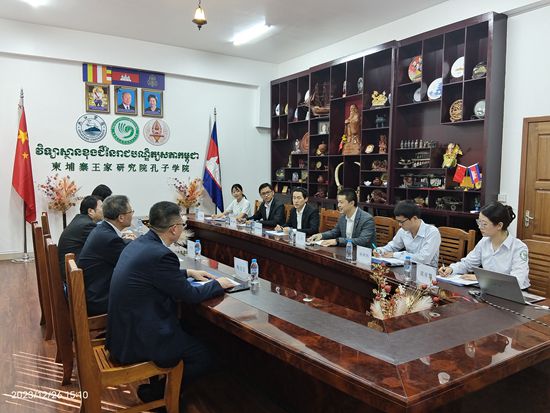 在柬埔寨期间,代表团一行访问了中国驻柬大使馆、王家研究院、王家研究院孔子学院、亚欧大学和金边王家艺术大学。